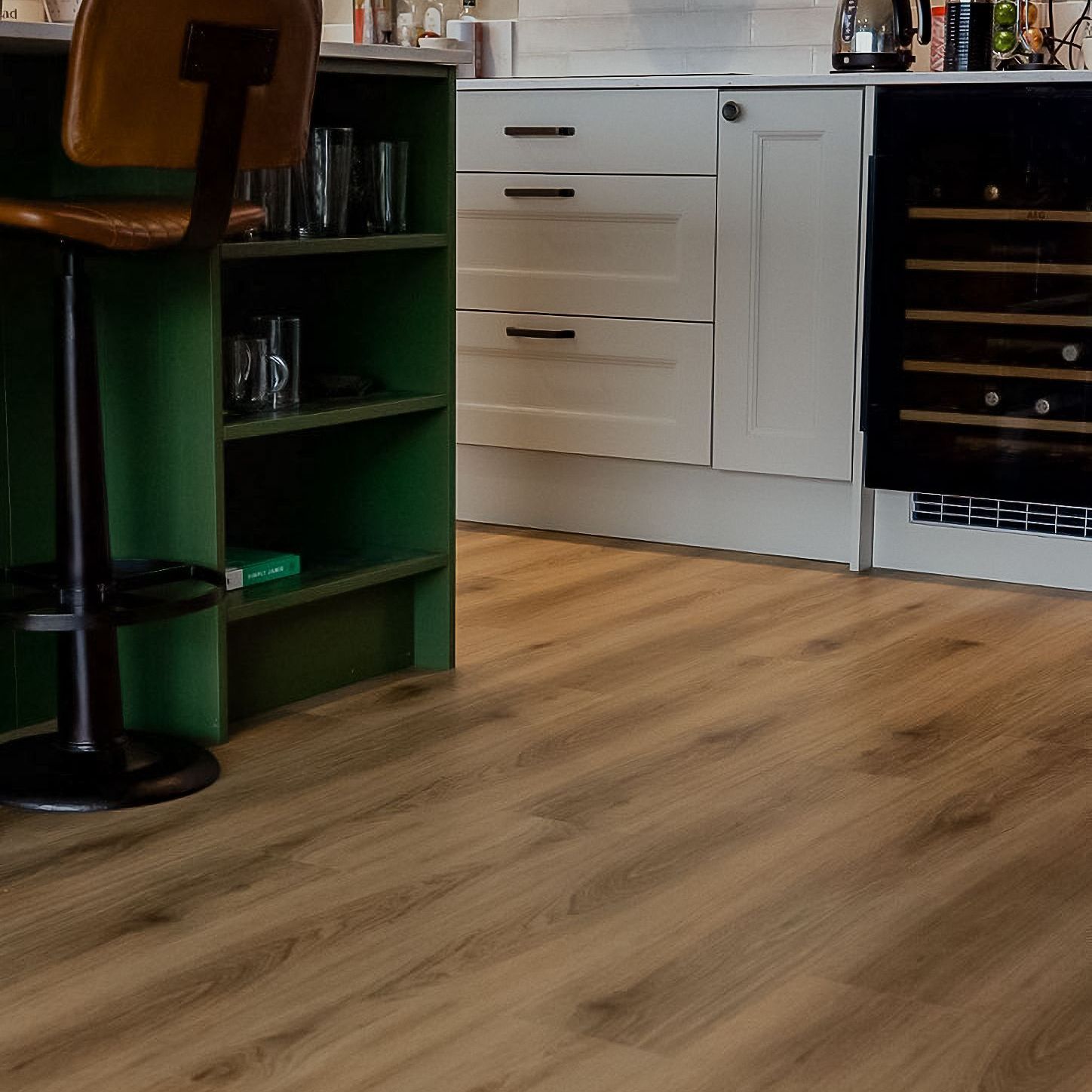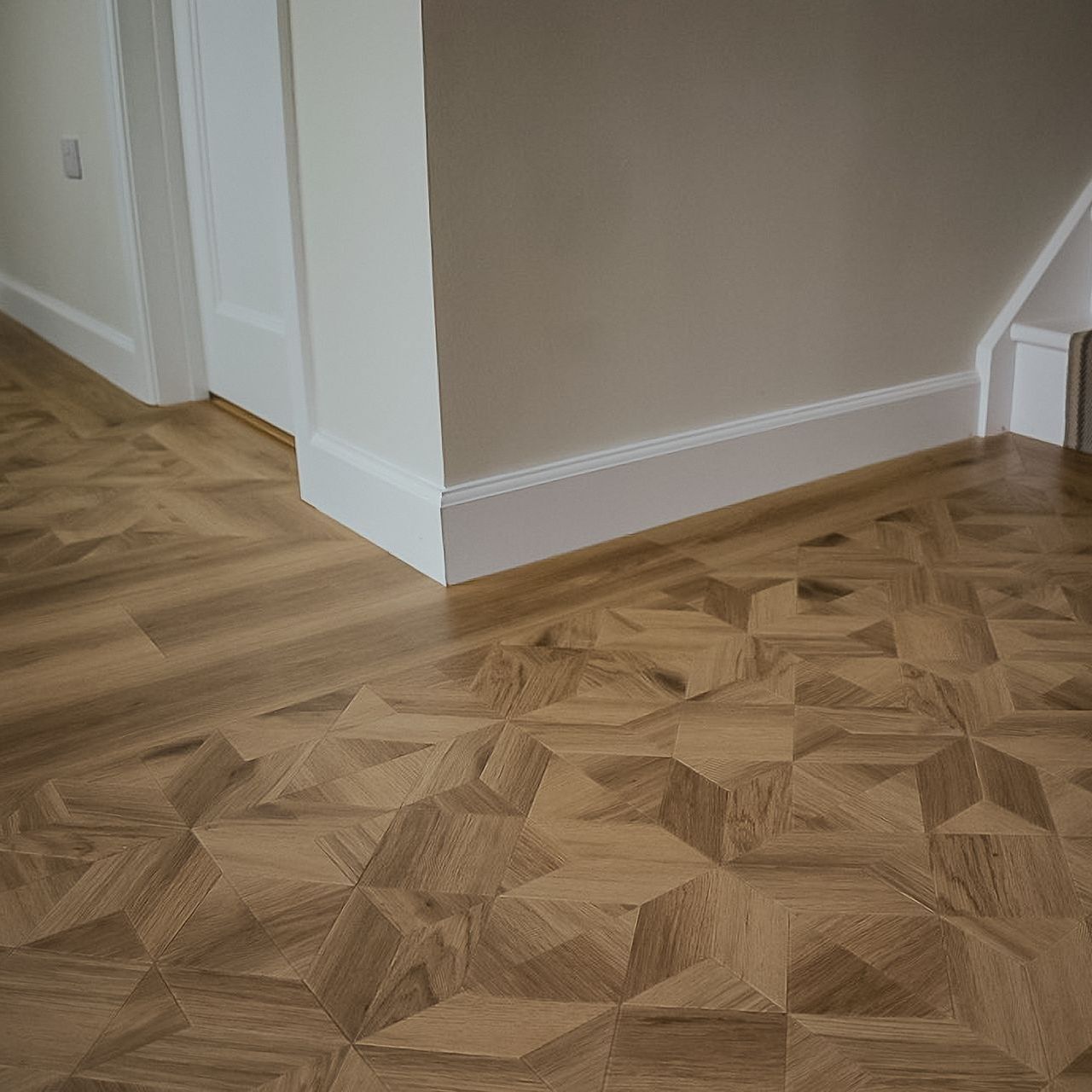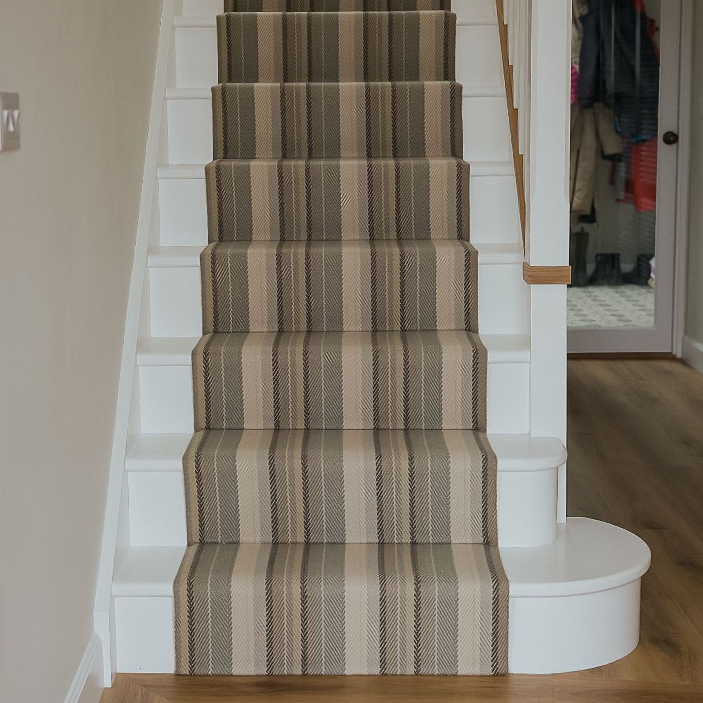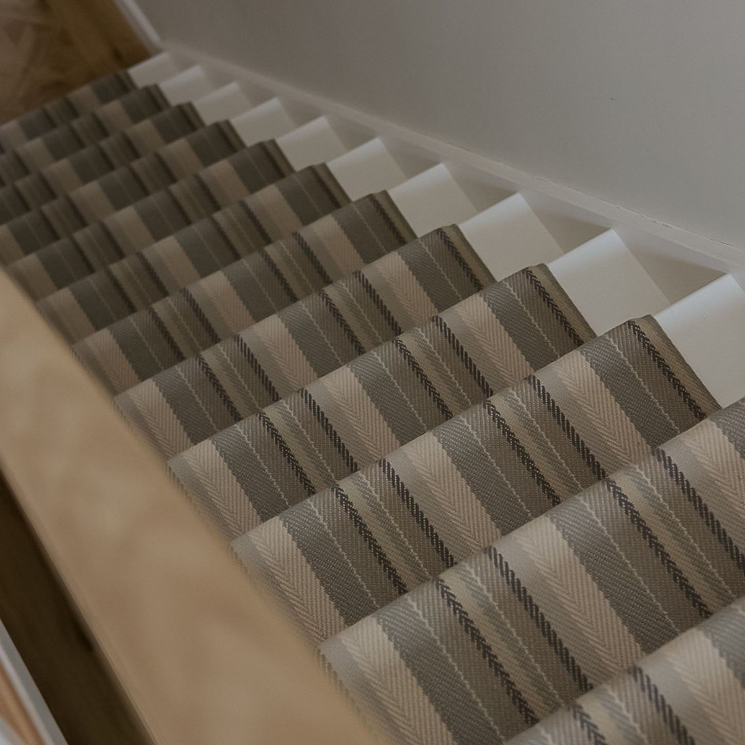 Rather than moving, the family fell in love with both the house and its serene surroundings, deciding that the best way to make it perfect for their needs was to invest in thoughtful, high-quality design. They chose Amtico LVT boards in York Oak to grace the downstairs living areas, adding warmth and elegance. The boards elegantly transition into a stunning Victorian Star pattern at the entrance, creating a welcoming focal point. To complement this, a striking Roger Oates stair runner was selected in Isis Reed to keep the neutral and timeless design, whilst still making an impact. Upstairs, the family opted for Brockway's Beachcomber carpet in Strand, which transitions into Pebble in the bedrooms and snug. This subtle change in weave was selected to accommodate the angles of the rooms, allowing the carpet to flow effortlessly throughout, while maintaining a consistent, sophisticated look across the space.